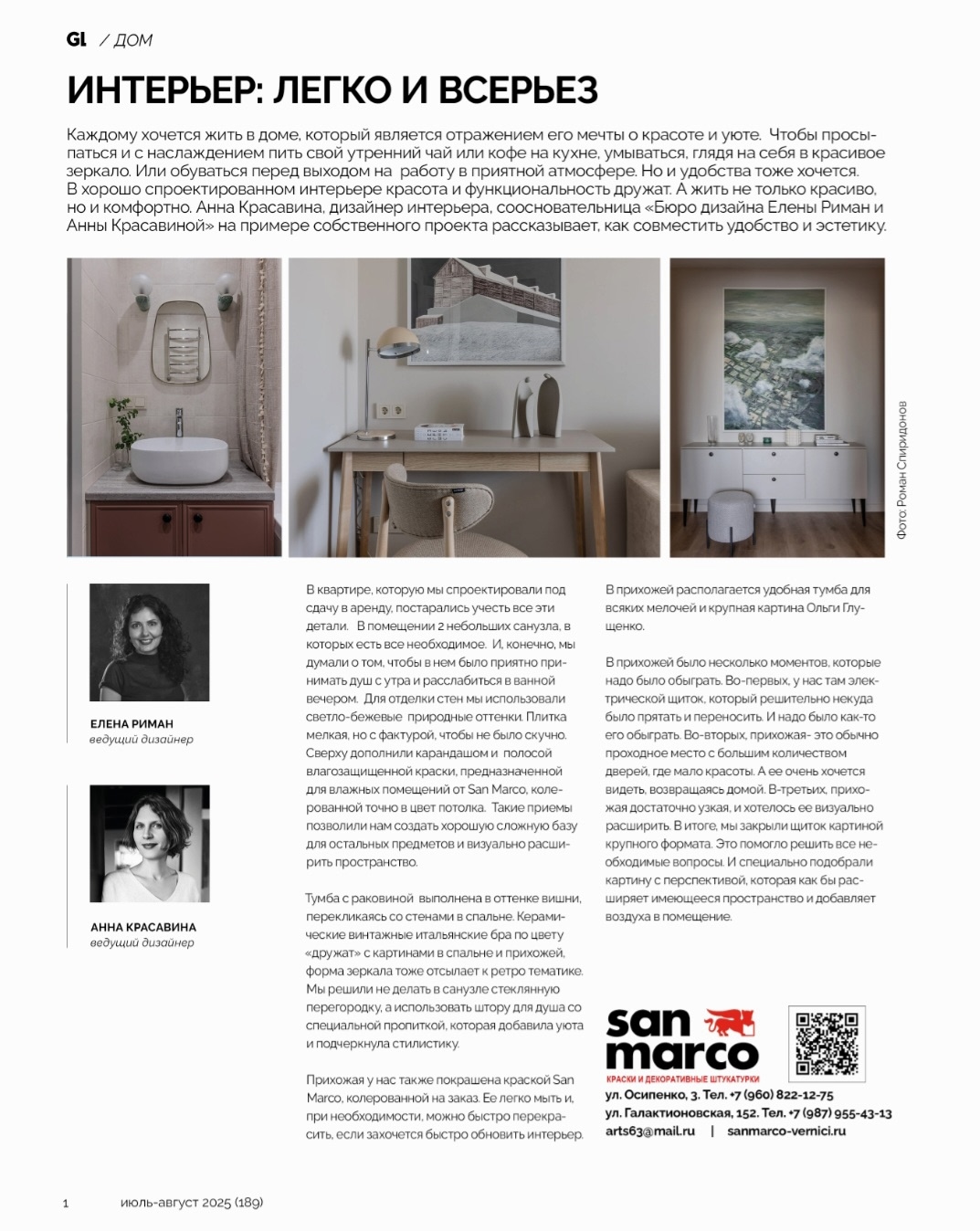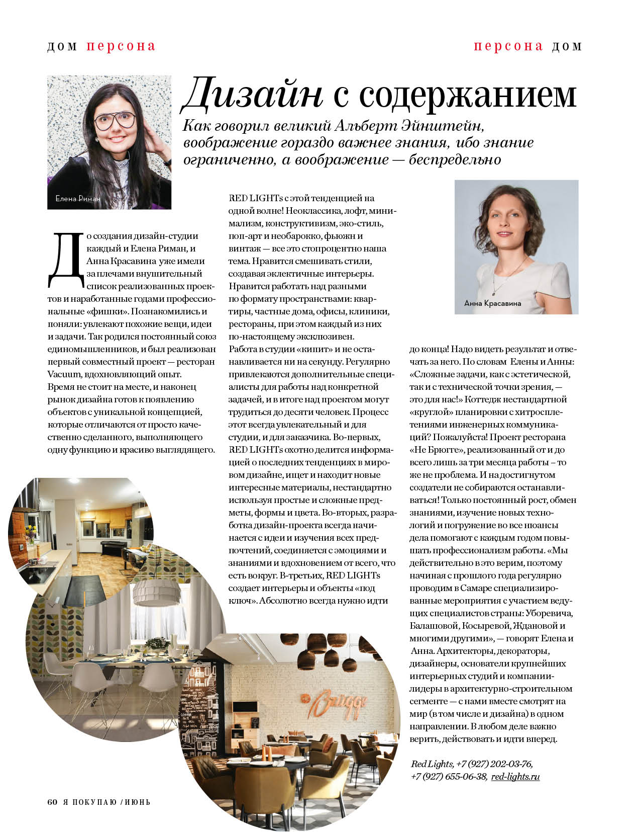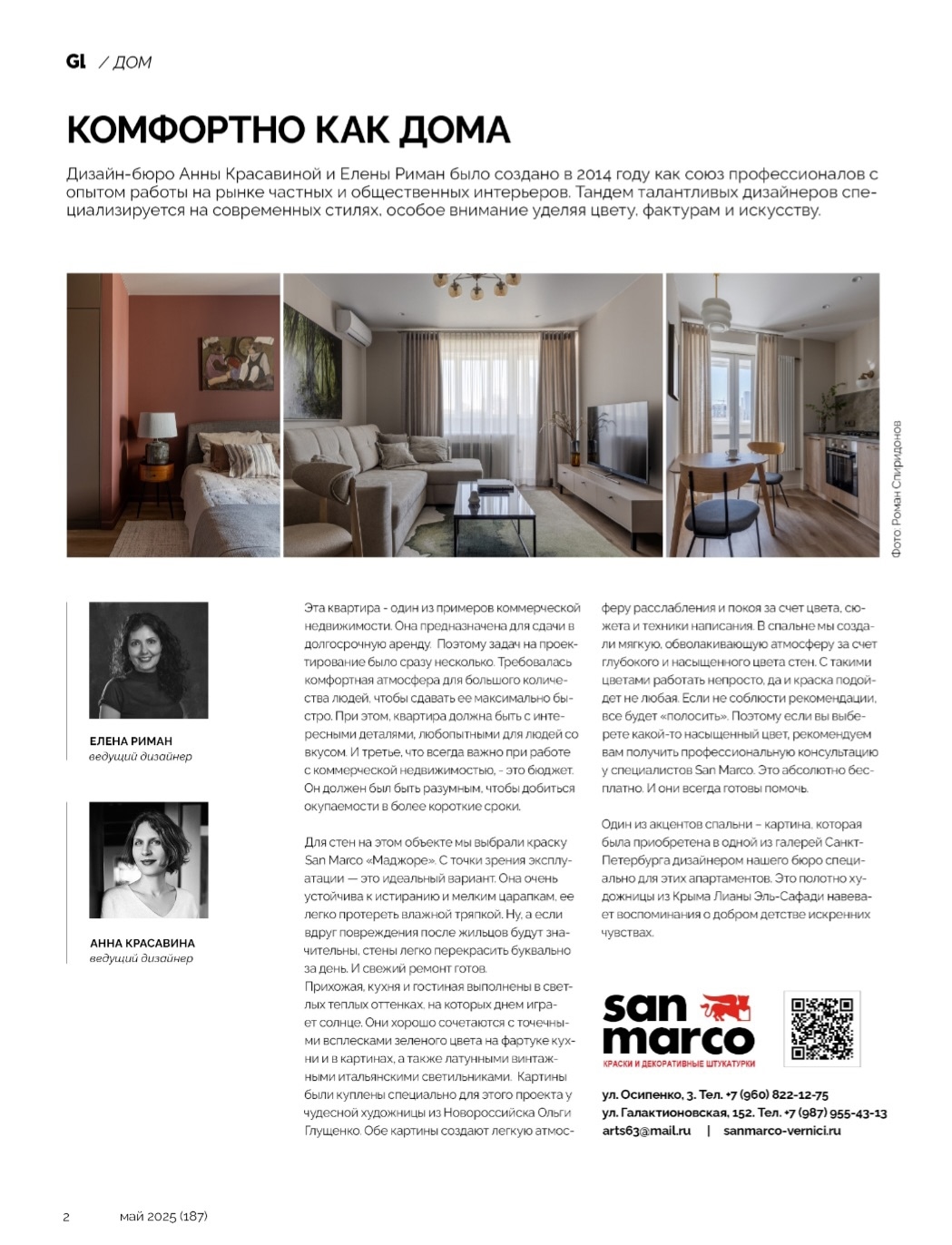События Телевидение Участие в ТВ-программах на «Россия 24» в качестве сценариста и ведущего эксперта: более 15 программ Радио «Стиль в большом городе» на радио Маяк Самара о ремонте, строительстве и дизайне Выставки Посещение выставок в России и Европе I Saloni, Милан 2012 I Saloni, Милан 2013 BAU, Мюнхен 2011 IMM COLOGNE, Кельн 2011 INTERIOROOM, ежегодно DUTCH DESIGN WEEK, Eindhoven 2017 SALONI, Москва СМИ и журналы Публикации в российских и зарубежных СМИ Интервью Интервью для журнала «Собака» Интервью для журнала «Я покупаю» Мероприятия Организация мероприятий с: Женей Ждановой Ольгой Косыревой Дианой Балашовой Борисом Уборевичем-Боровским Соорганизатор фестиваля «Dom Fest» 2023 и 2024